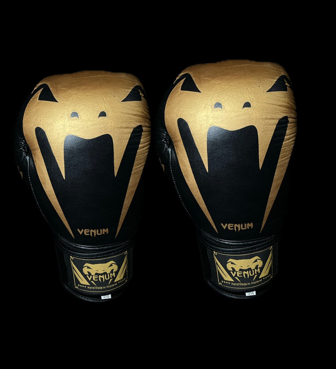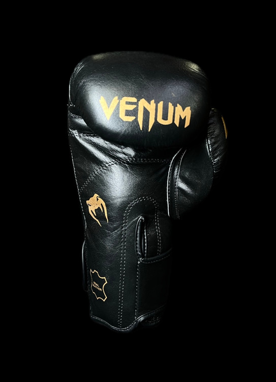 دستکش بوکس چرمی مشکی طرح VENOM طلایی – سایز 12 اونس